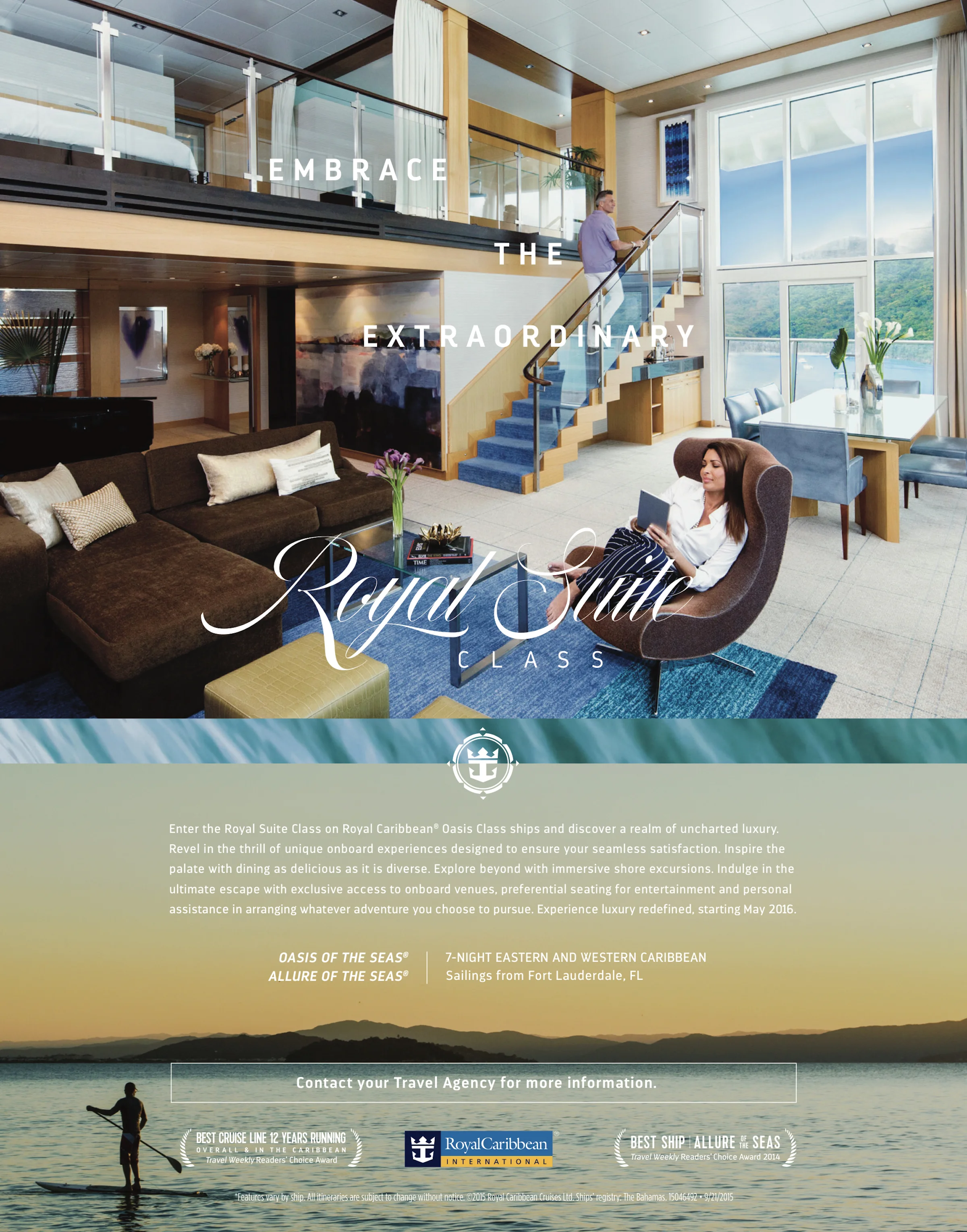 Royal Caribbean is the world's largest cruise line, known for pioneering first-at-sea onboard activities, innovative ship designs and unparalleled personal service. I have worked as part of the in-house agency at Royal Caribbean since 2014, gaining a vast breadth of insight into the cruise, travel and hospitality industries in that time. Below are some examples of recent work I have done, including pieces for the newly launched Royal Suite Class luxury program and the bold new Come Seek brand campaign.